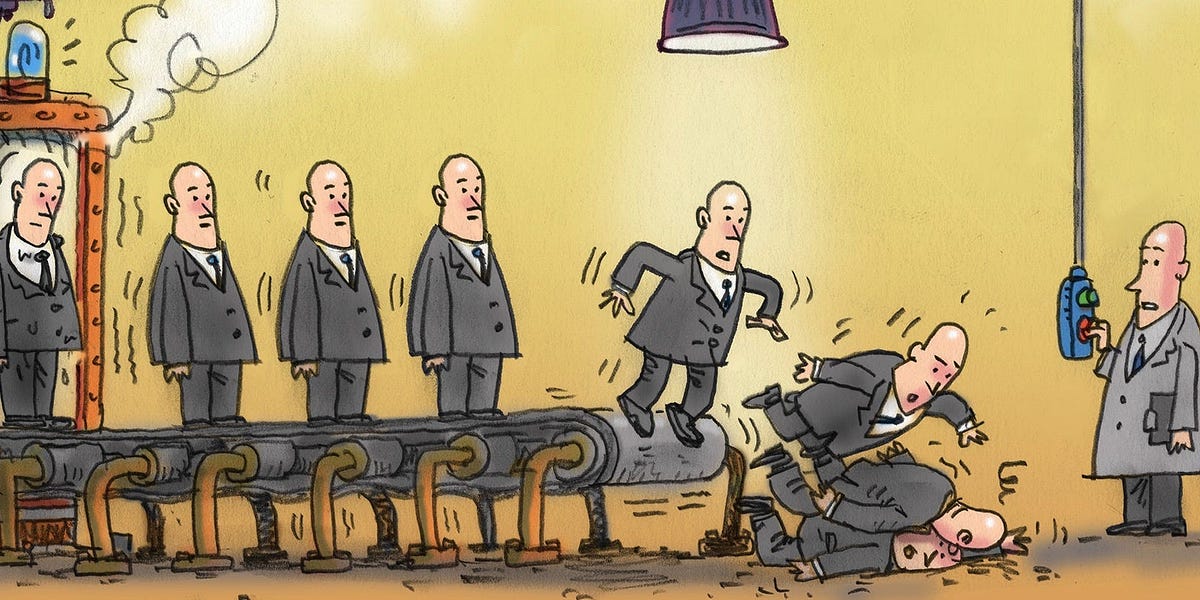 Men in suits wreak havoc while complaining about dress codes