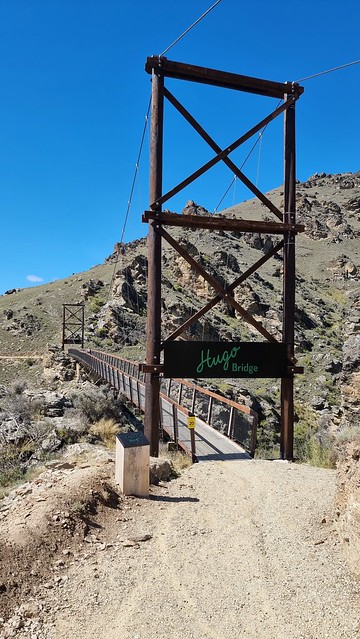 Hugo Bridge, 85.5m long and 28.6m high, spans a gap to link into a 4WD trail for the next section of the ride.