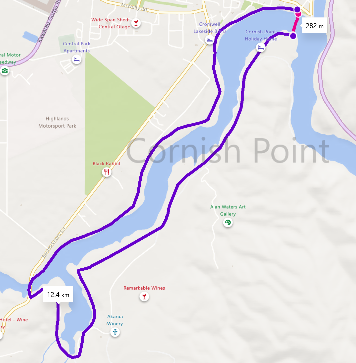 The Cornish Point deception is real. Here you are both ~300m and ~12km from Cromwell as the trail loops up to Bannockburn.