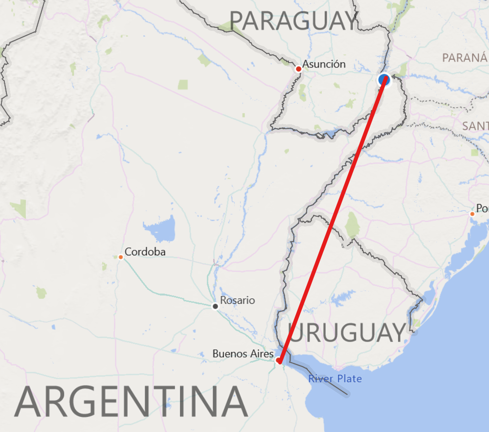 The River Plate & Uruguay in the mist as we set off from Buenos Aires about 1100km, two hours flying, Northeast to Iguazú.