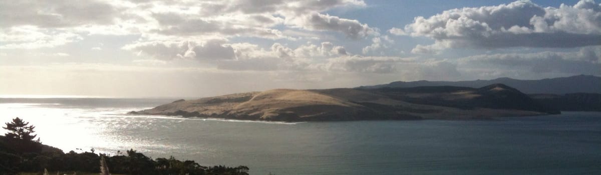 The Hokianga Harbour with its golden sand dune North Head is an impressive sight.