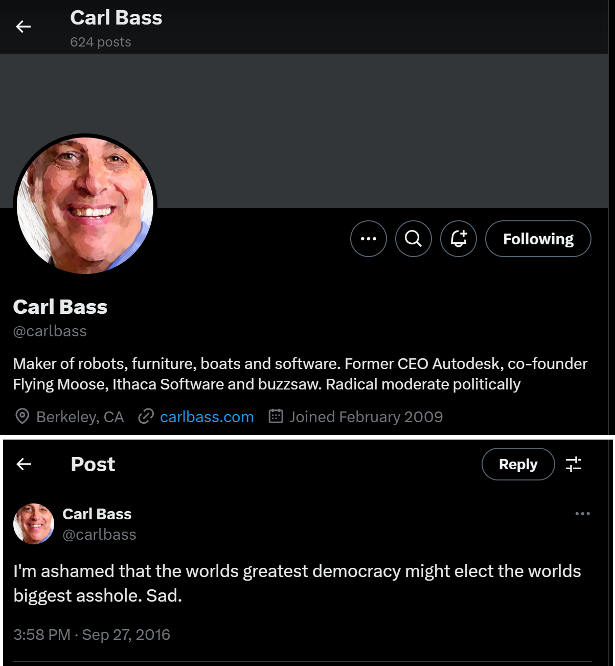Not all CEOs can be Carl Bass, bravo for saying this (screenshot below) (about Donald Trump)