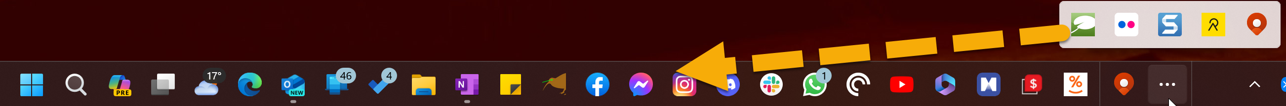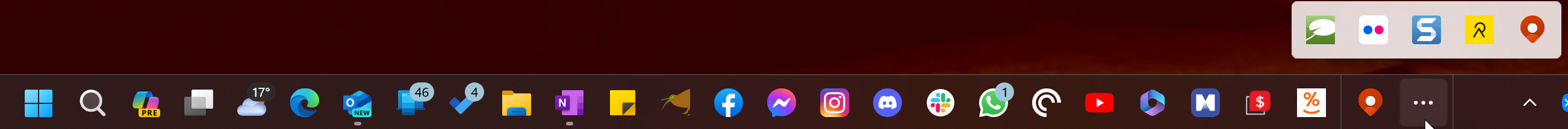 If, like me, you pin a lot of commonly used shortcuts to the Windows 11 Taskbar it will eventually put excess ones into a ...Overflow Menu.
