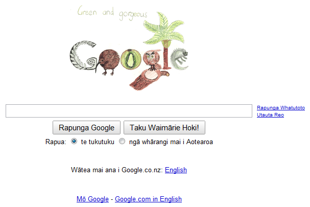 Last year, for the first time, Google asked New Zealand students to give the Google logo a uniquely Kiwi makeover by creating a doodle to reflect the theme of ‘My New Zealand’. Eight-year-old Amelia Abbott of Nelson won the competition with her entry, ‘Green and Gorgeous’, and today's it's proudly on our home page for all to see….