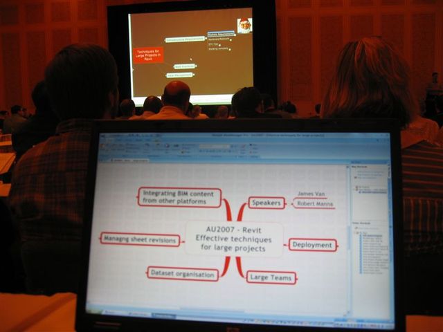 James Van abandoned PowerPoint and used MindManager for his presentation. Robin used MindManager to take notes! Ths is the result: File Attachment: AU2007 - Revit Effective techniques for large...