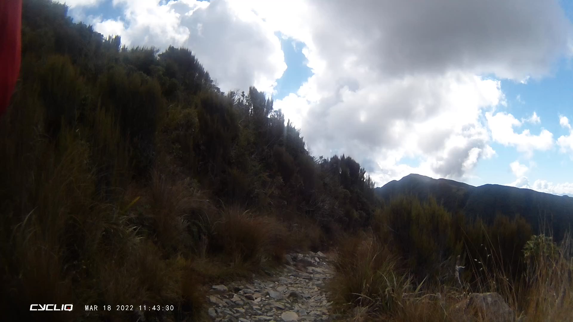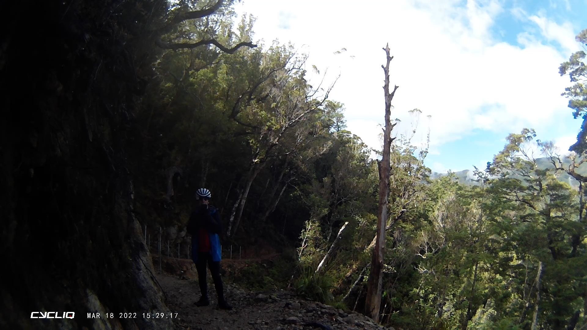 It was soon after I passed the start of what will be an emergency shelter in the middle of this leg. Quite a big building pad, like the huts, with a helicopter landing clearing nearby. It's a pity this isn't another hut, would be ideal for 2-day riders and ease the pressure on Moonlight Tops Hut where cyclists and hikers both stay.