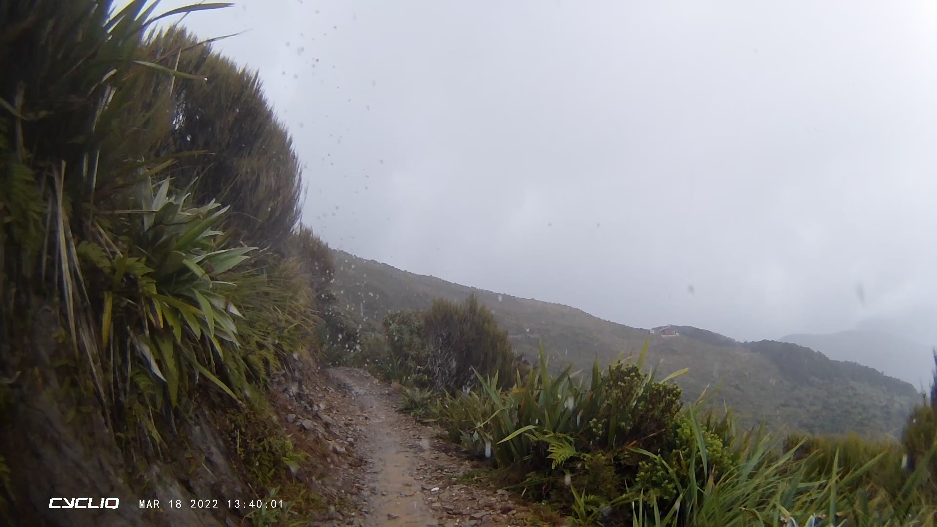 A few kilometres from Moonlight Tops Hut the clouds came in for real giving an eery feel as the trail threaded through the mist.