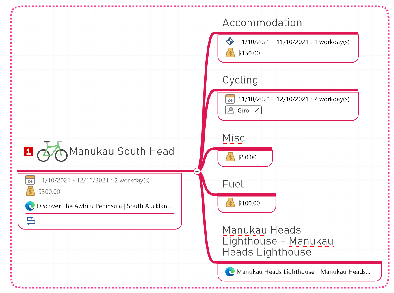 In a single map I could brain-dump ideas, contacts, gather references, track media (like this post), look at timing and forecast/track budget.