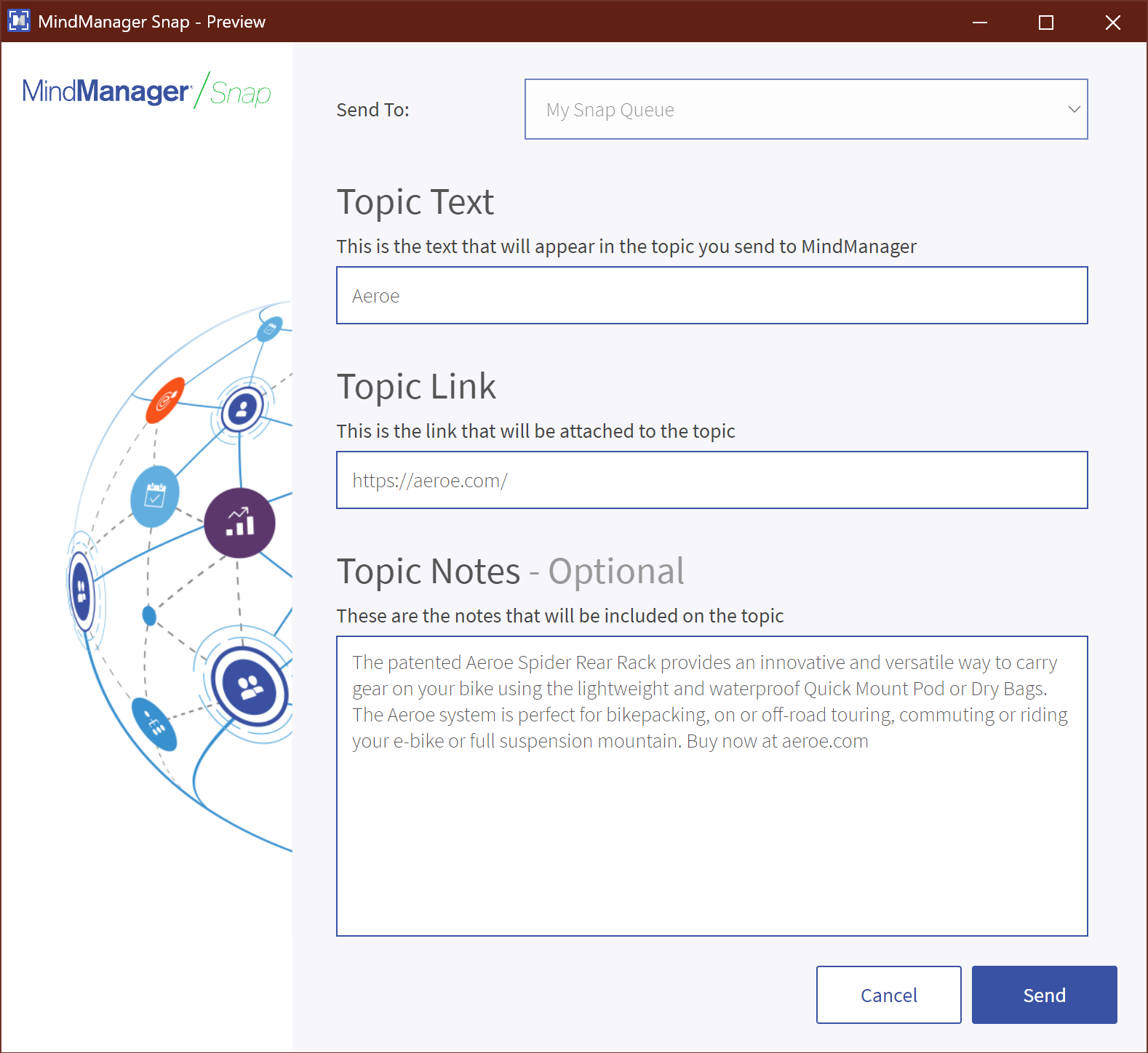 Back in MindManager open the Snap pane and drag those items, sync'ed ready for you, into the map