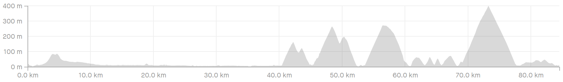 Picton 19km and the last big Port Underwood Rd climb is the highest (~400m) and steepest with about 5km of 8-14% gradients.