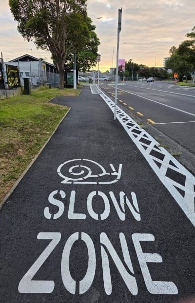 I was amused to see this marking on the new 'The Strand Shared Path' because—entirely by chance—I was listening to an amusing in parts, astonishing to horrifying in others, Radiolab podcast about snails...