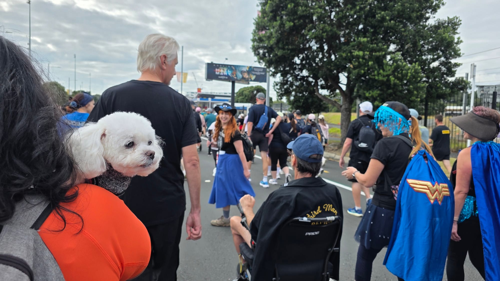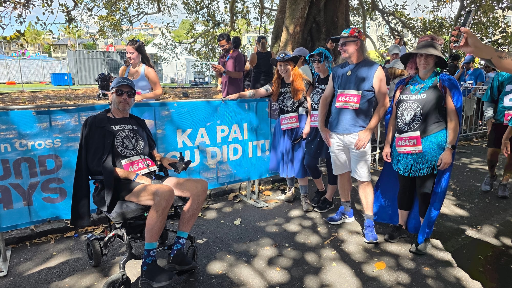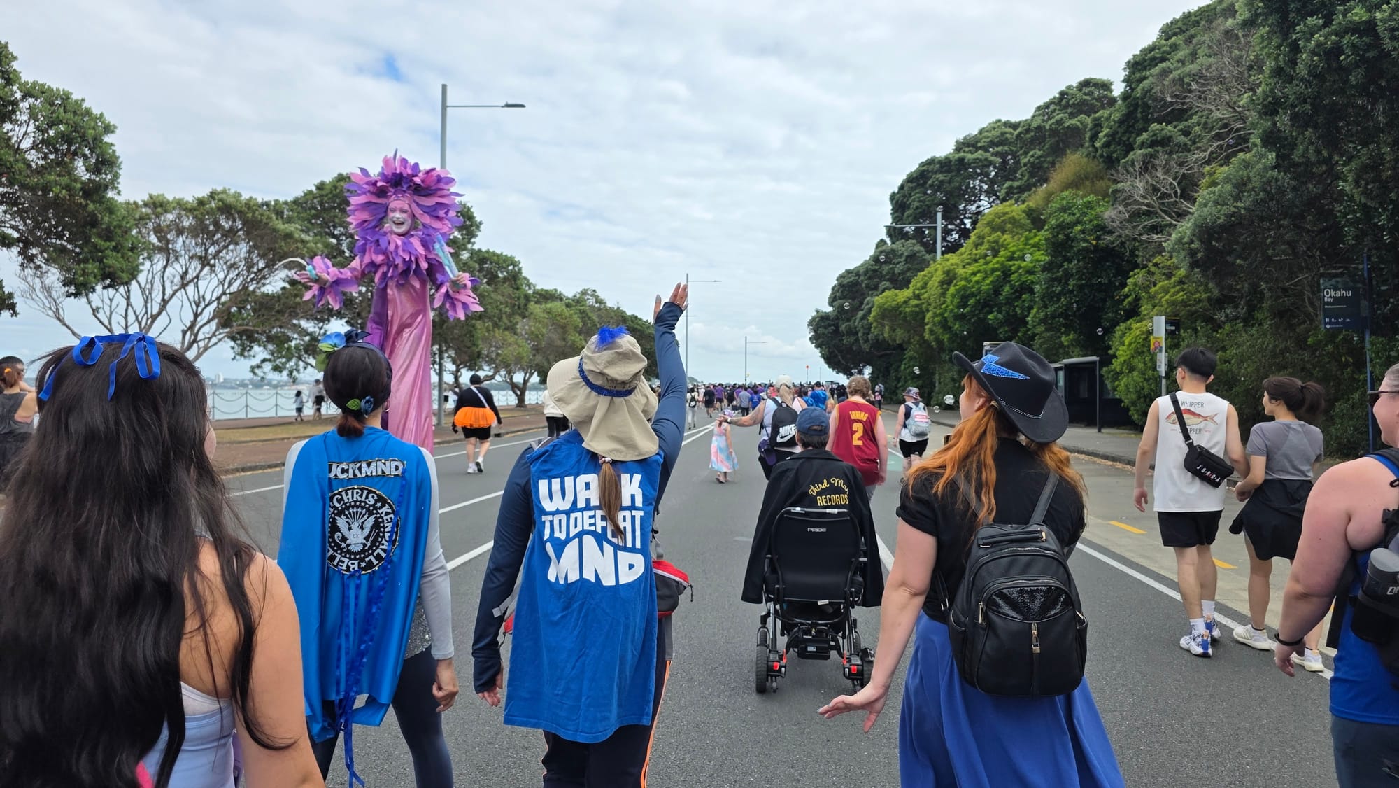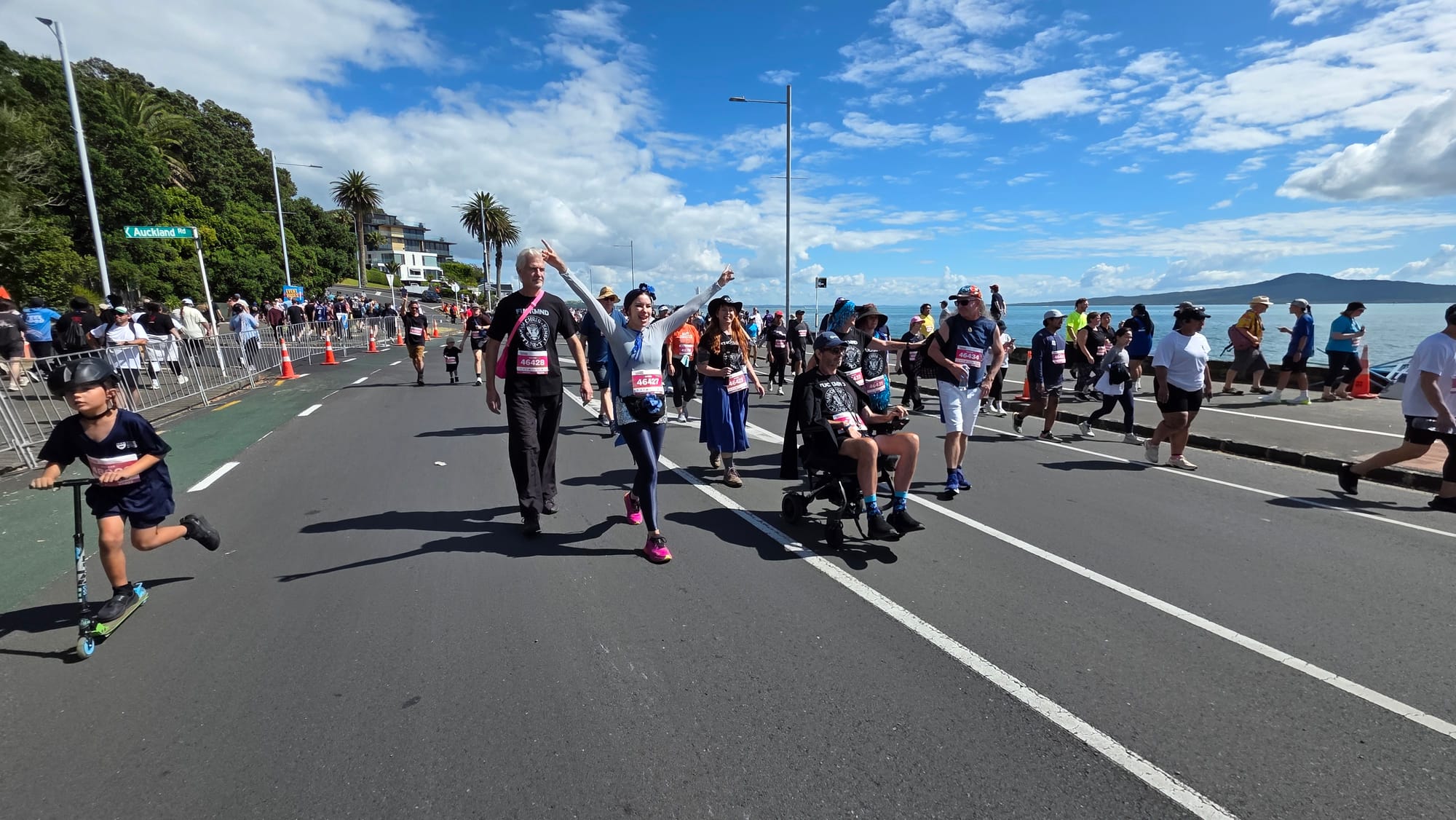 There was a great atmosphere, lots of teams walking for good causes, bands and DJ's dotted along the course. One thing I noticed compared to cycling Tamaki Drive was that, away from the entertainment, hundreds of people (in our vicinity) walking is far quieter than four lanes of cars...