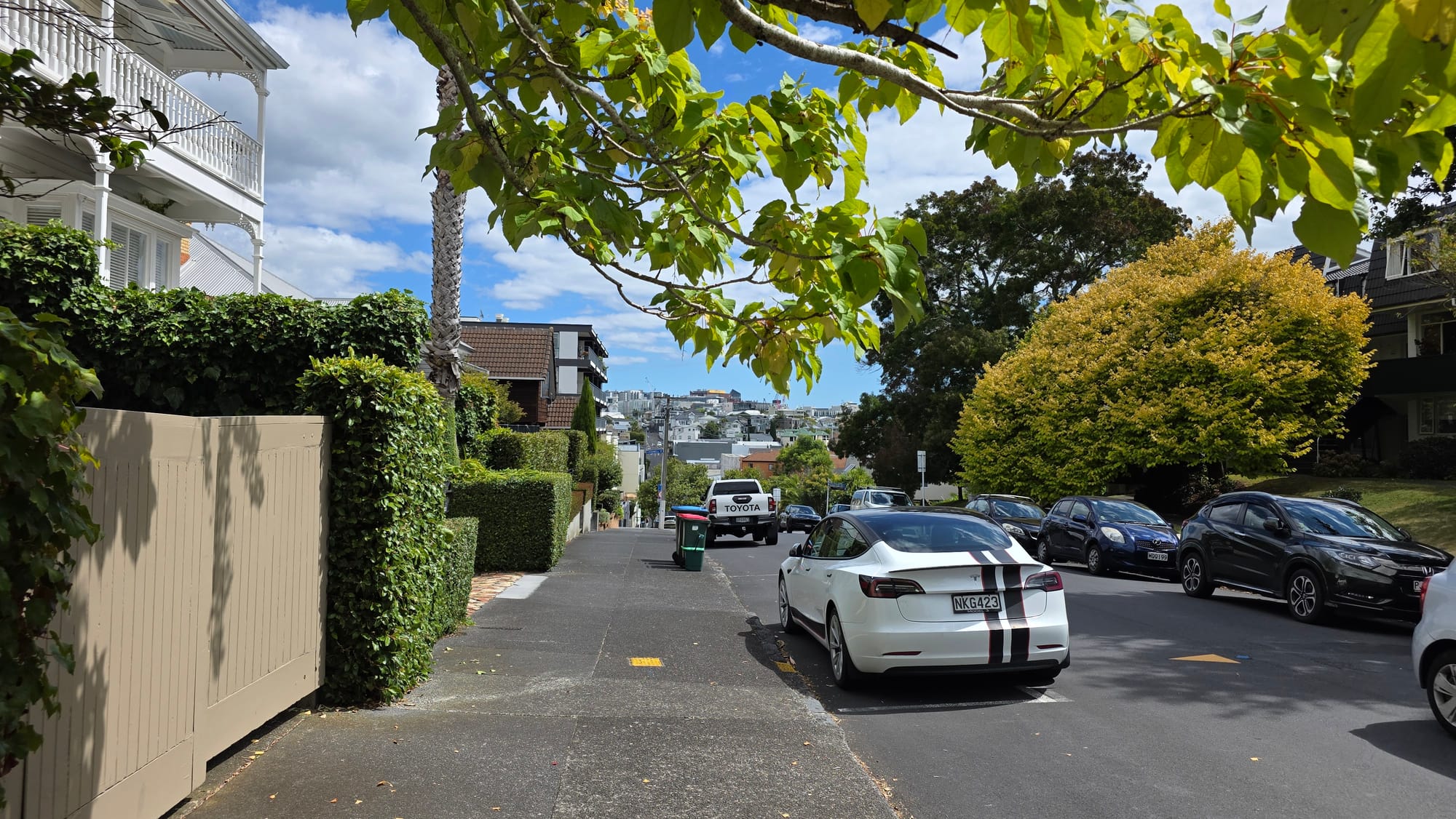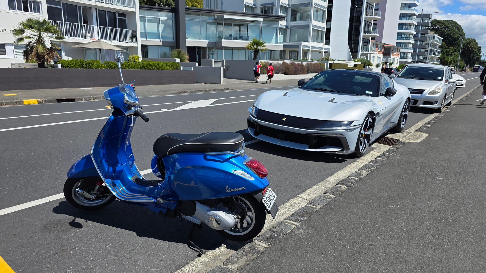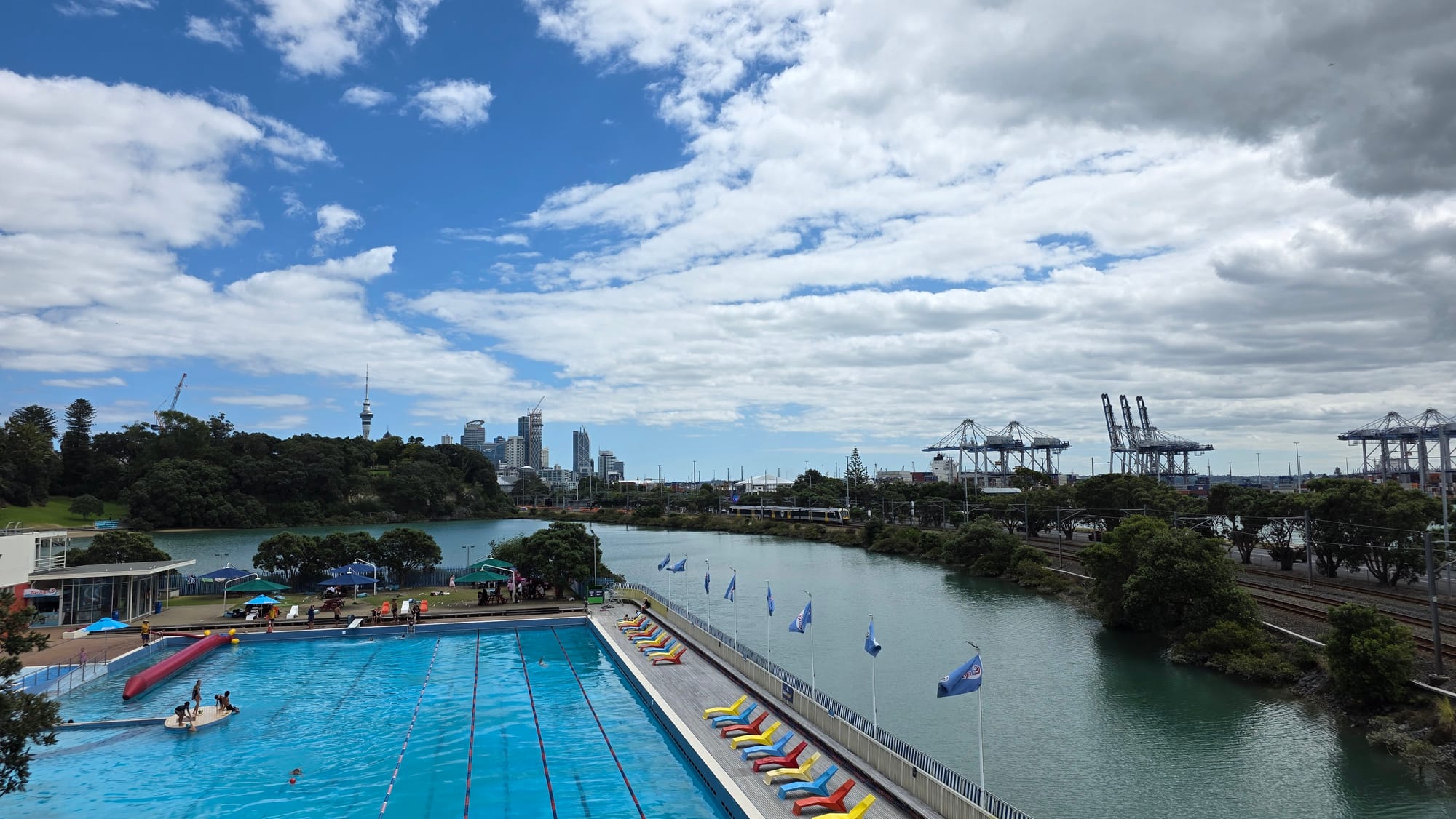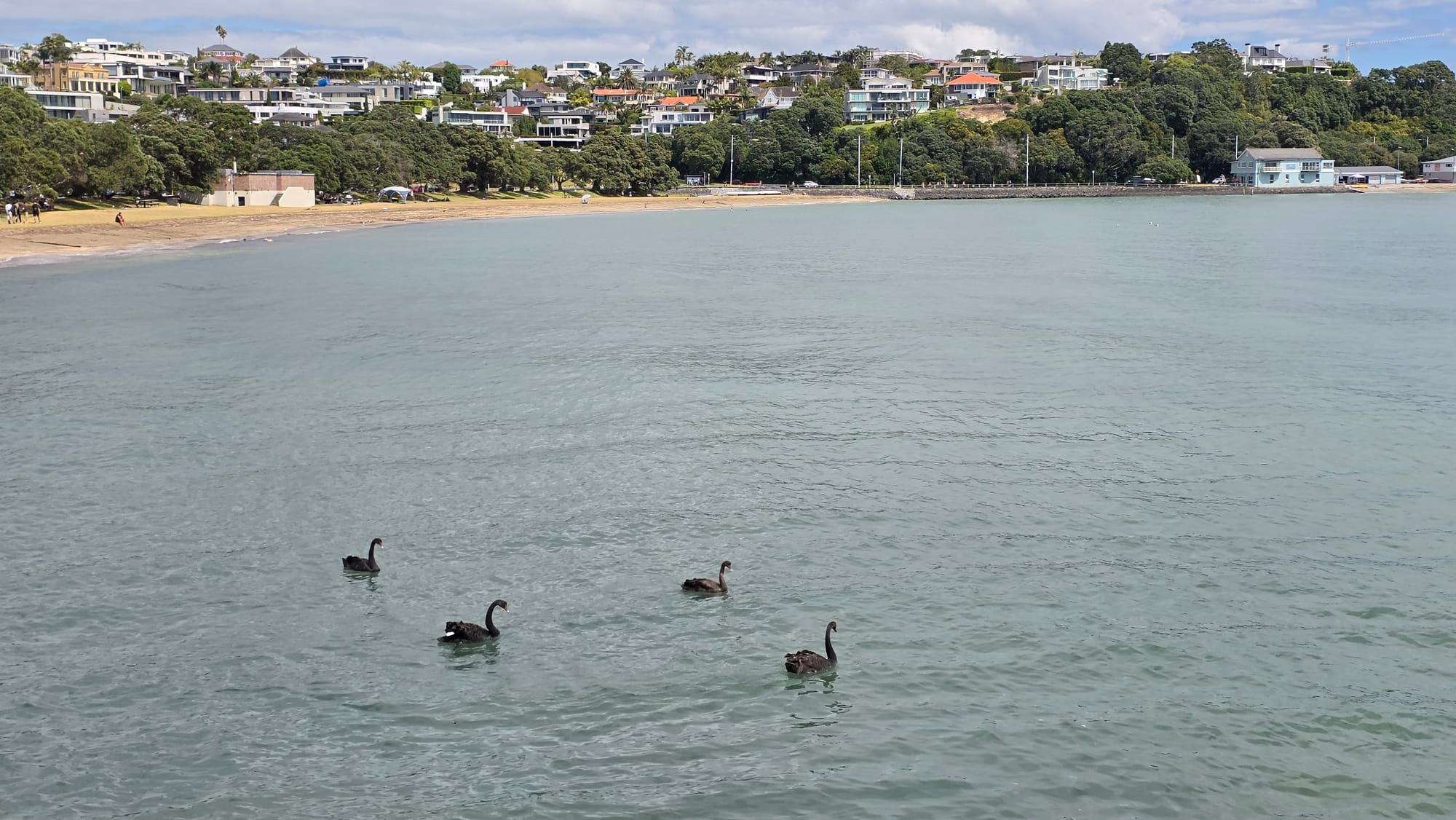 The walk was nice, passed some more Italian vehicles, a lovely Vespa and Ferrari 12Cilindri at Kohimarama, and seaswans at Okahu Bay. Nearing Ngapipi Rd I checked the AT Timetable and reckoned, with help from Google Maps walk estimates, I could cut across Parnell Baths to Judges Bay, then over the hill(s) to Parnell Station and just about get the 14:27 train.
