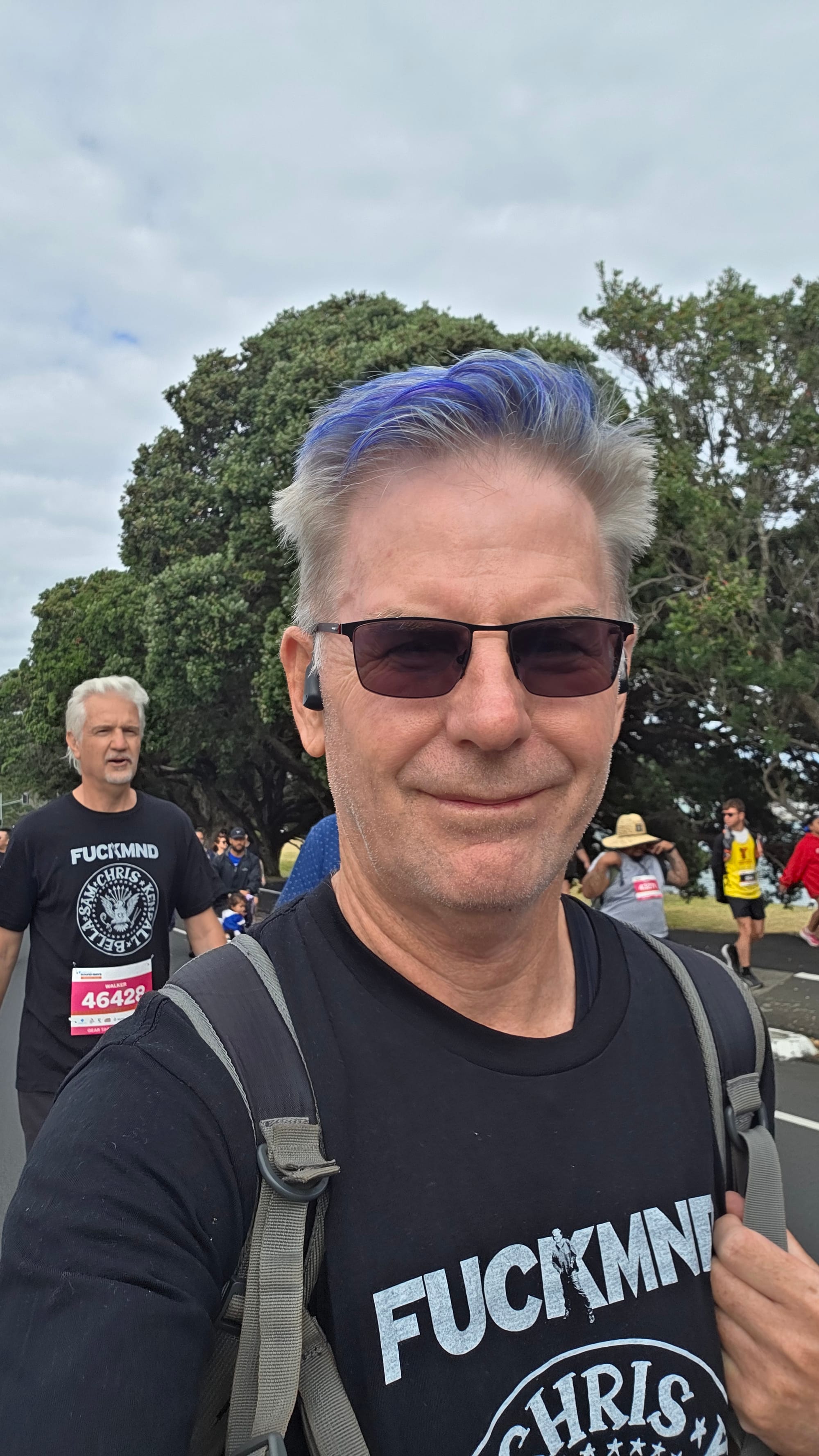 The sun came out from about Kohimarama, and it got hot. It was great to cross the finish line, Chris still rolling strong, and complete my first Round The Bays event.