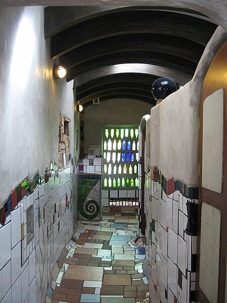 I knew of his work as we had one of his prints (sadly not an original) when I was a kid. He spent quite a bit of time in New Zealand at his farm, near Kawakawa, and on his death in 2000 was buried there. The town has adopted the Hundertwasser theme and several main street buildings, artworks are done in his unique style.