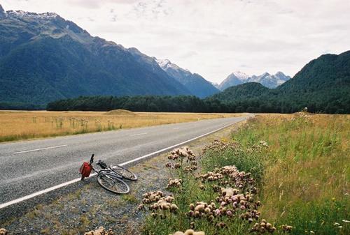 Above: A busy South Island road. Note the traffic density – the bicycle is mine.