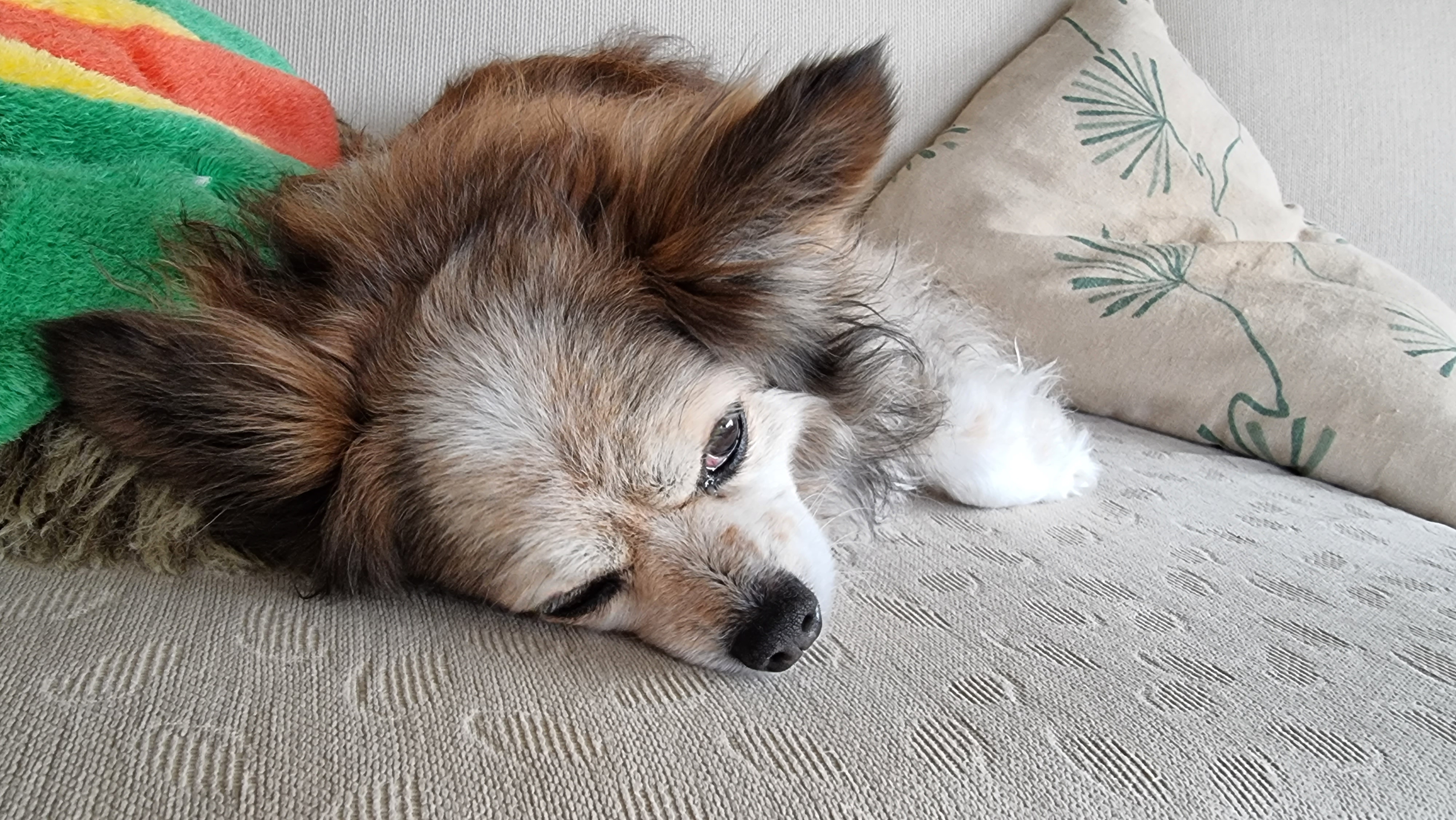 He had a minor heart condition, diagnosed as normal for a dog of his age (12) and not yet needing treatment at check-up two weeks ago, but died suddenly of a heart attack. Glad it was quick and not alone, vale Alfie.