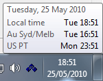 One of the trivial, but favourite, things in Windows 7 (maybe in Vista too but can't remember) are the additional clocks in the System Tray. It's good to know who's still in the past when you live in the future.